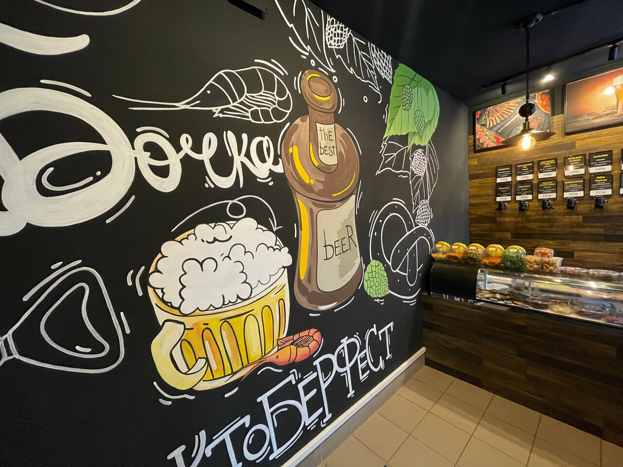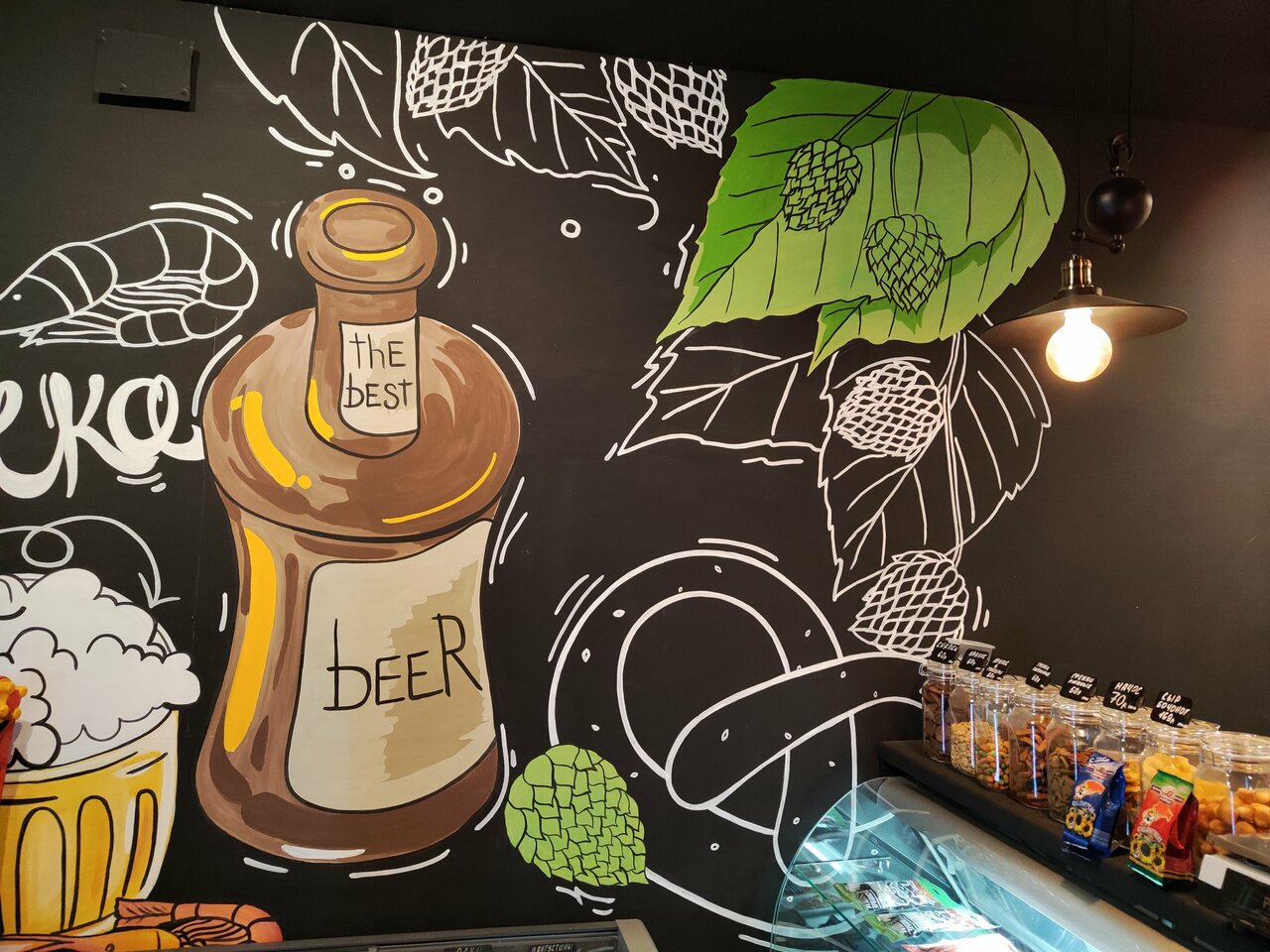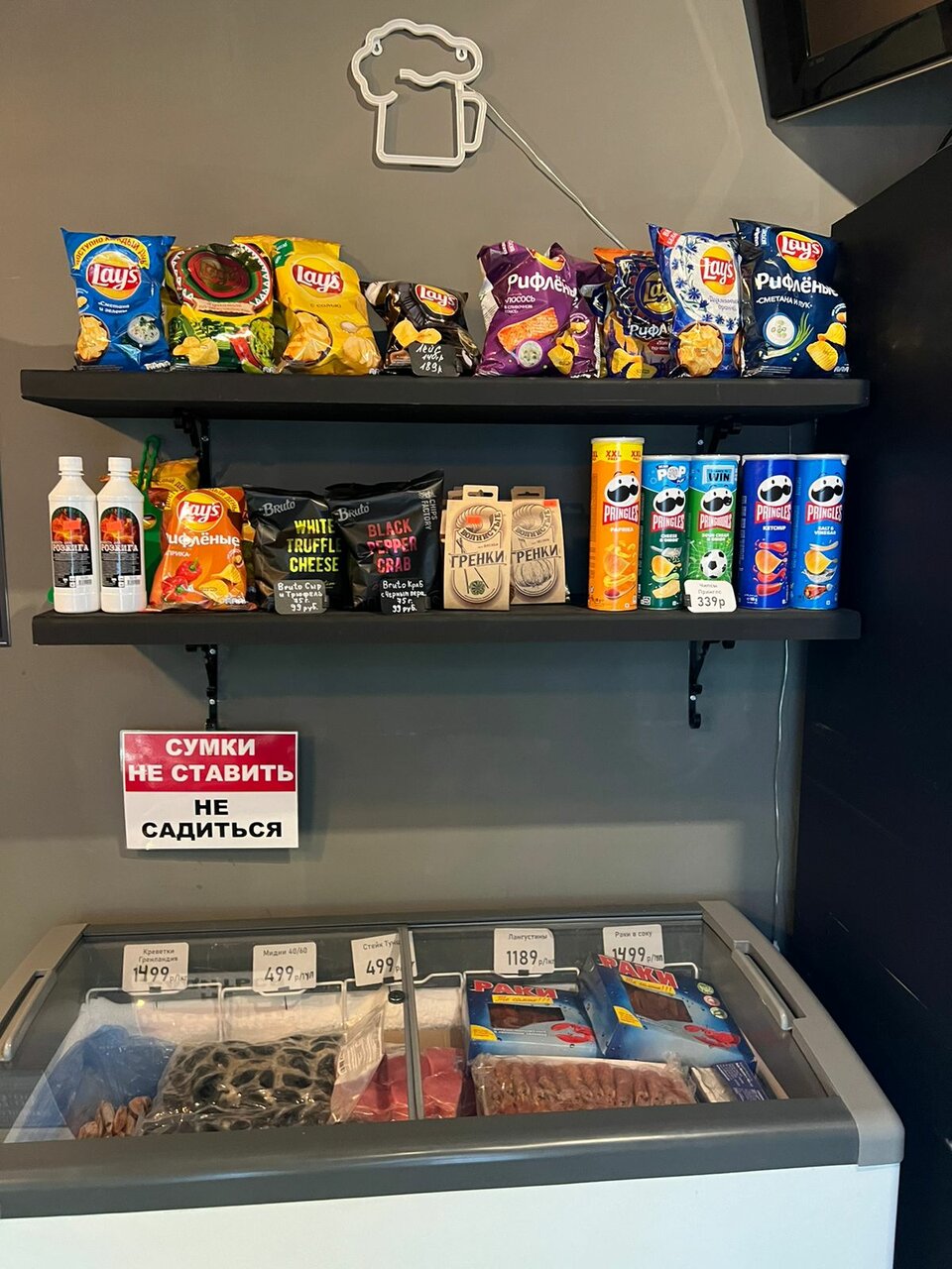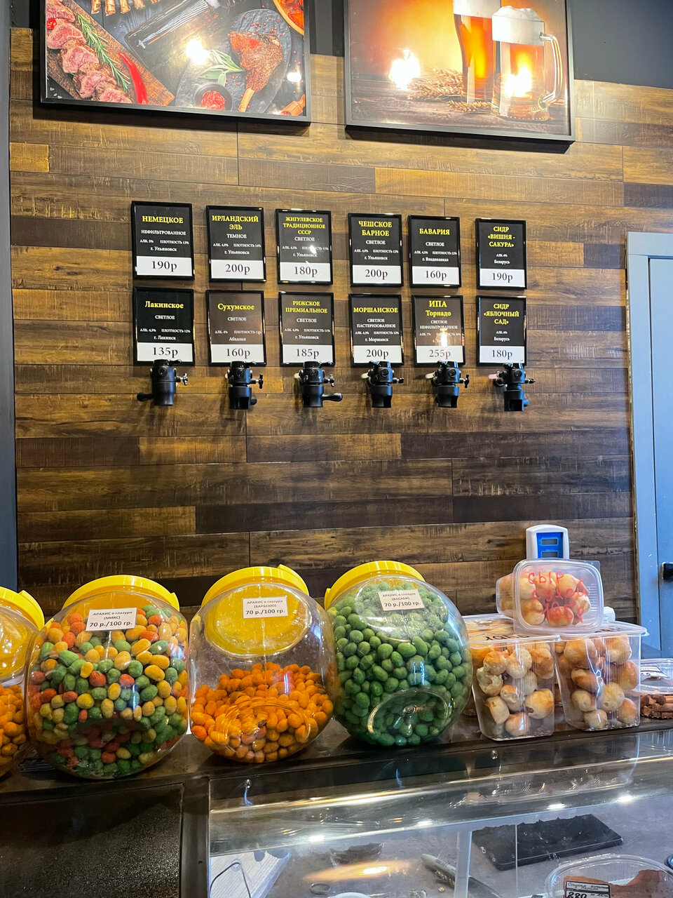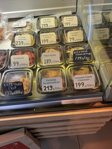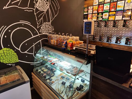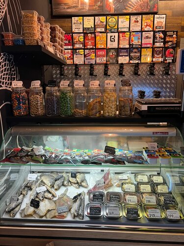 Много разного и вкусного пива. Разнообразные закуски и даже вкусные большие креветки замороженные есть в продаже!